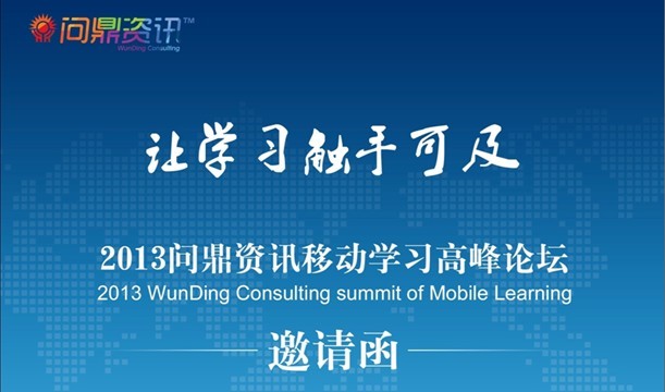 然而,移动学习毕竟是一种新的学习模式,对很多企业来说,这种模式如何与企业传统培训结合,如何有效运营,还有很长一段路要探索。问鼎资讯,作为企业移动学习路上的先行者,早在2008年开始研究移动学习,并与中国移动集团公司、广东移动、中国银行深圳分行等多家企业有过多次成功的项目合作经验,2013年7月问鼎再次整合大客户移动学习平台运营经验,重磅推出了面向中小企业的低成本租用版移动学习产品--问鼎云学习,此款产品因其一份价格三份服务以及强大的培训管理功能深受客户的好评。10月25-26日,由问鼎主办的以"创新"、"应用"为主题,囊括"绩效化"、"社区化"、"网络化"和"碎片化"等热门主题的国际化移动学习高峰论坛将在深圳举行,会议将邀请美国在线教育协会、网易云课堂、中国银联、中国移动、江苏师范大学、华南师范大学等知名企业高管、知名大学教授及全国各大企业同仁一起,共同探讨移动学习产品与应用等核心问题,更国际化的视野,更落地化的运营案例是此次大会的最大热点。关于在线课程、平台运营、最新的发展趋势,相信您会在大会上找到想要的答案。