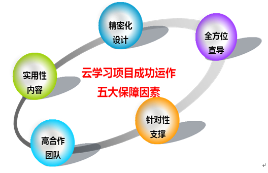 我们发现,要保证一个云学习项目高效运作,必须要有以下五个保障因素: