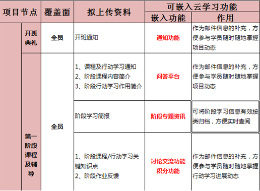 这样对学员和客户来说,能够全面了解"云学习"平台有哪些好的功能可以促进学习;对项目组成员来说,能够知道"云学习"平台有哪些好的功能可以促进项目进展,增强项目效果。