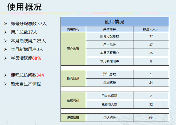 "云学习"的后台数据分析报告需要注意避免单纯呈现原始数据图表,需要将通过原始数据分析得出的结论和改进措施呈现出来,方便项目执行人员和培训管理员根据项目实际执行情况调整项目进度与环节。