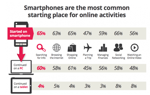 根据Google发布的一项关于多屏幕市场用户习惯的研究显示,工作以外的时间,平均每人在屏幕前的各种交互行为为4.4小时,而人们平均每次使用手机的时长约为17分钟、平板电脑30分钟、电脑39分钟、电视43分钟。显然,在提供内容服务上,智能手机、平板电脑和电视这四大设备都各自扮演者很重要的角色。 Google研究同时发现,当这四种设备被综合起来使用的时候,它们将会变得更加强大。而且,虽然用户花在智能手机上的时间是最短的,但大多数在线任务都是从智能手机开始的,然后会接着在其他设备上来完成。因此,如何以基于手机等移动设备的移动学习设计为切入口,利用人们在不同设备上的投入时长设计更加多样立体的学习体验,值得企业培训工作者思考。
