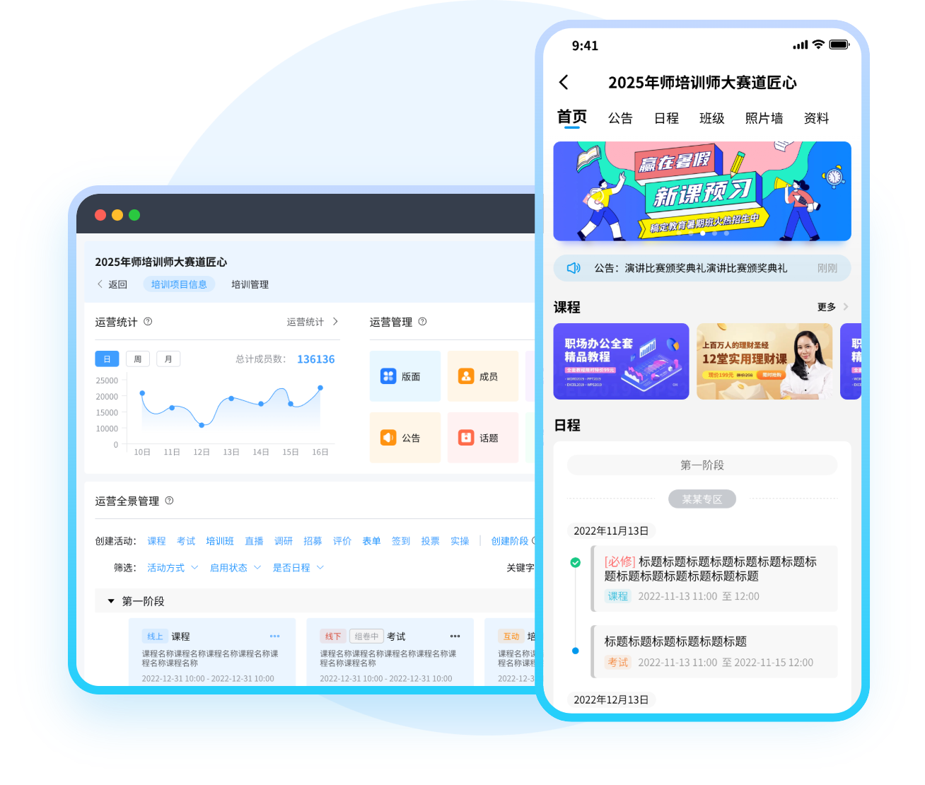打通线上线下培训闭环流程,有机整合面授精讲、外部培训、赛事培训等多元模式,满足新员工入职培训、线下实操考核、互动式课堂等多种培训场景